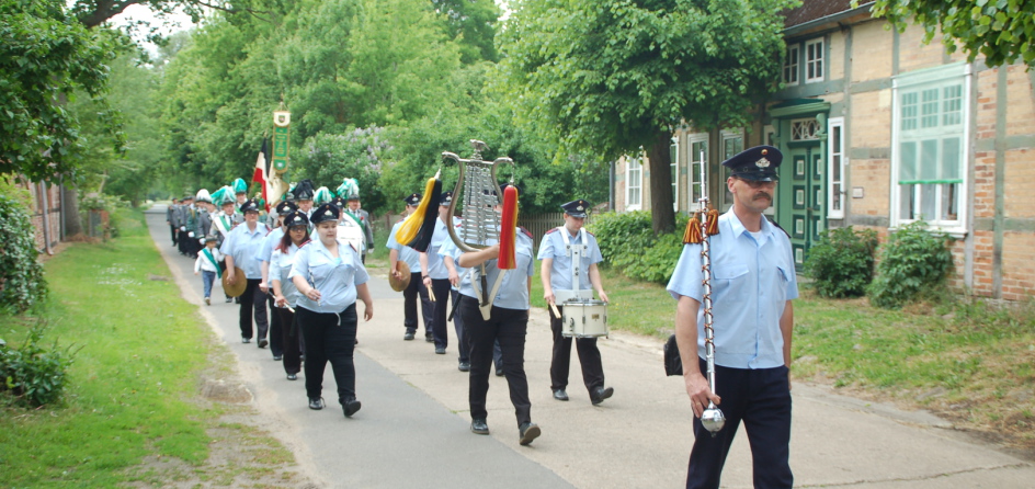 Am Nachmittag stand dann erst mal das Abholen der Gast-Vereine auf dem Programm. Gemeinsam zogen wir dann zum Ehrenmal zur Kranzniederlegung. Anschließend ging es zum Schützenplatz zum Grossen Zapfenstreich, der Ehren der  ältesten Künscher Schützen durchgeführt wurde. Mit dem Einmarsch ins Schützenhaus und den Ehrentänzen konnten wir auch samstags den offiziellen Teil erfolgreich abschließen und genossen den Rest des Abends.